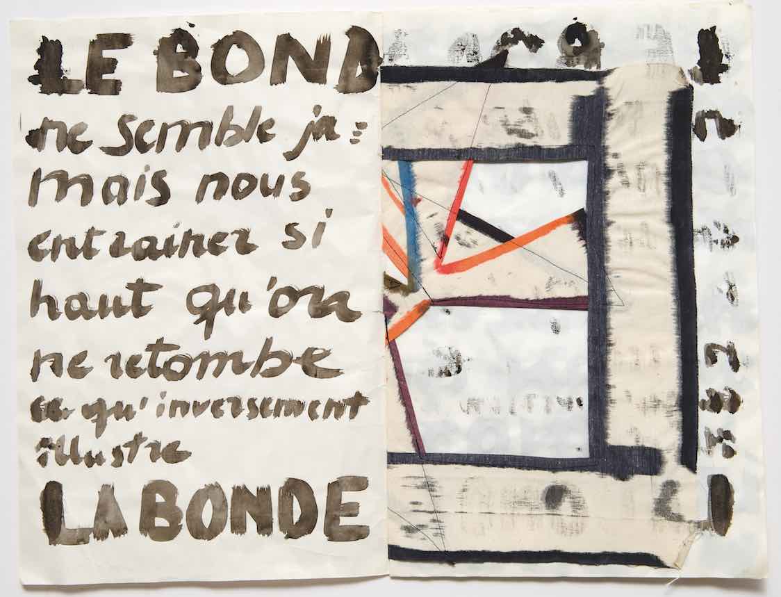 Voici pourquoi j’ai été surpris : j’ai toujours pensé qu’avant de travailler sur des œuvres communes, des livres d’artistes, ou des œuvres croisées avec un artiste, je passais toujours par une approche critique, ou technique de son travail. Il y a eu sans doute cette approche avec Charvolen, au moins lors de nos discussions, mais il n’en est résulté aucun texte. D’emblée, mes premières approches repérables sont des réalisations plastiques. Je me souviens que nous parlions de ce travail comme de sortes de brouillons, d’essais. Nous n’en attendions rien, et nous ne les avons exposés que 35 ans après les avoir réalisés. Je me souviens que Bond et Bonde me semblaient renvoyer à son travail. De même les transformations de Langue. Encore davantage les Lamentations d’Ulysse, sans doute à cause du travail de Pénélope ? Ou de ces échos de « voyage », de « transfert », de « destinée » qui flottent depuis cette époque entre mes yeux et le travail de Charvolen.