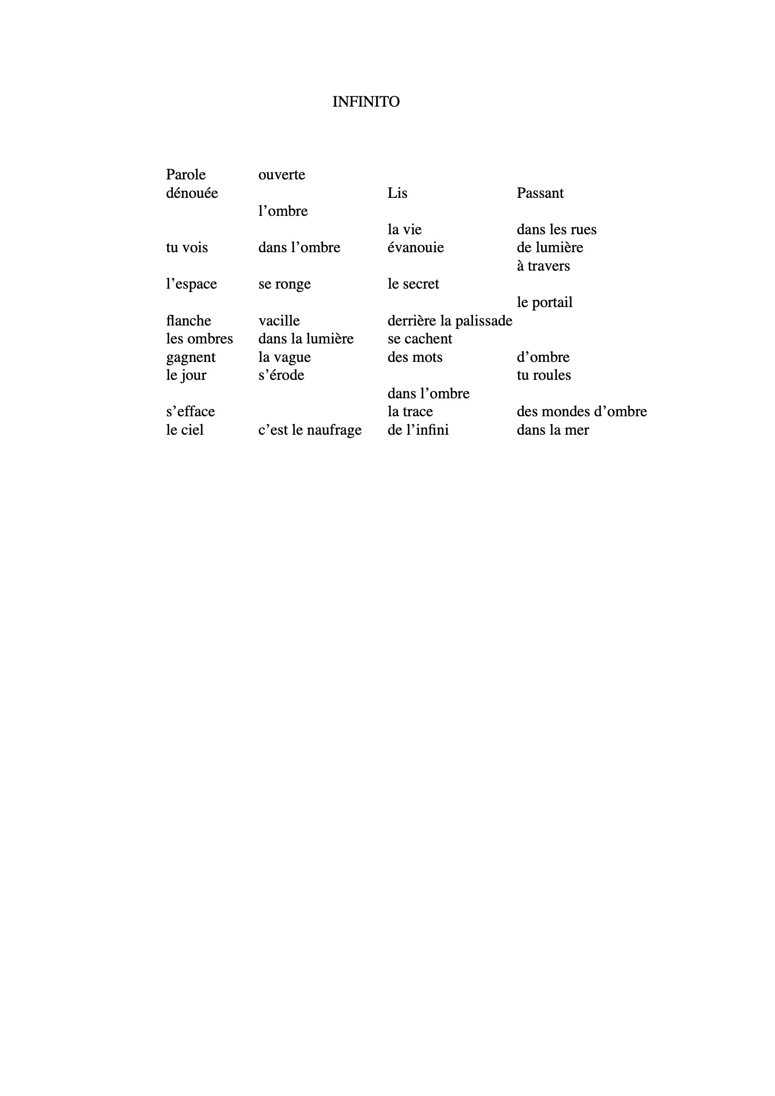 Accueil > Les rossignols du crocheteur > CLAUZEL Jacques > 2003 - Infinito