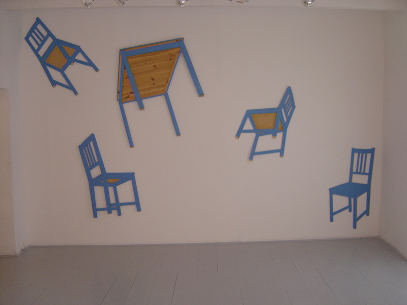 Elle le regarde et elle le voit, le monde... Il est, ce monde, familier et désolant, peuplé d’objets faits à notre image ; objets du repos et du temps qui passe : chaises, fauteuils, tables, horloges, récepteurs radio, journaux, devantures de magasins ; objets de nos croyances et de nos désirs : saintes vierges, bibliothèques, livres sans épaisseur ; objets de nos spectacles de vie ou de mort, corrida ; et toute une animalité vauguement inquiétante, gorilles et taureaux... Un monde révolu aussi, images le plus souvent des années soixante, comme un clin d’oeil à l’histoire de l’art entre pop et nouveau réaliseme à qui on va chiper un prétexte. Mais aussi un monde lointain, c’est-à-dire un monde avec lequel il est plus aisé, peut-être, de prendre ses distances. Un monde que l’on regarde avec une ironie à peine voilée, comme s’il s’agissait du monde d’une enfance qu’on ne regretterait pas...