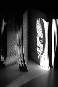 Sylvie Tubiana a proposé à 59 auteurs de réaliser avec elle chacun un opus d’une série qu’elle a intitulé Fragments du Livre. Chaque auteur devait travailler sur une ou plusieurs photographies extraites d’une série et réalisées par elle. J’ai choisi une série dans laquelle le portrait de Sylvie apparaît sur une photo du Colomba de Mérimée. C’est ce qui a donné cette sorte de voceru. On trouvera des informations sur son travail sur le site de Terre à ciel. Pour se faire une idée de Fragments du Livre, aller sur son site personnel ou sur sa page Instagram