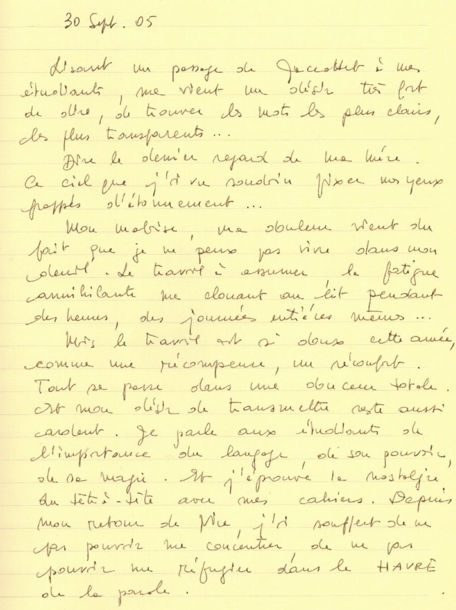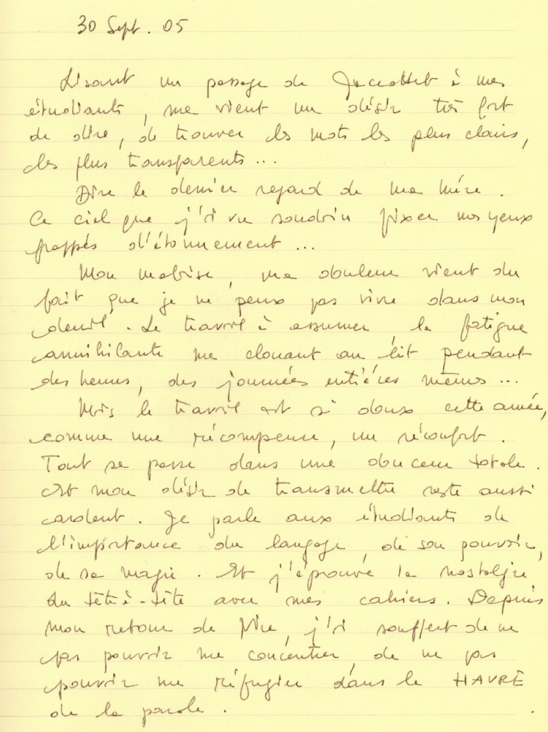 Accueil > Au rendez-vous des amis... > Palamara Enza > Le manuscrit du Cahier > Le 30 septembre 2005