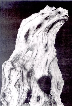 En même temps qu’ils ancrent le monde dans l’œuvre, les objets que scrute et caresse le regard de l’artiste sont ce par quoi il s’ancre dans le monde ; rien sans doute ne le dit davantage que les dessins de souches et racines ; la série est datée des années 70-80, on en trouve toutefois les prémisses dès le début des années 30. Ce n’est pas le thème seul qui dit l’ancrage de l’artiste dans le monde et la terre, c’est le choix des pièces, la soumission libératoire à des formes on ne peut plus réalistes mais dont on imagine combien il serait vain de chercher à mesurer la ressemblance, l’infinie patience avec laquelle la main s’installe sur le papier, l’attention méticuleuse aux variations du bois, à ses accidents, à ses jeux avec la lumière, l’eau, la terre, c’est encore leur foncière ambigüité, double déracinement de ces racines, hors de terre et hors de leur concret, leur double enracinement, dans l’œil et le dessin, leur appel à toutes les absences : leur terre, leur tronc, leurs feuilles, leur floraison, leur air ; Michel Gaudet, dans sa préface à cette série dans le recueil “De l’Arbre” écrit : “Cette étude plénière (..) est une somme. Elle répond à l’éthique de Georges Bauquier…”.